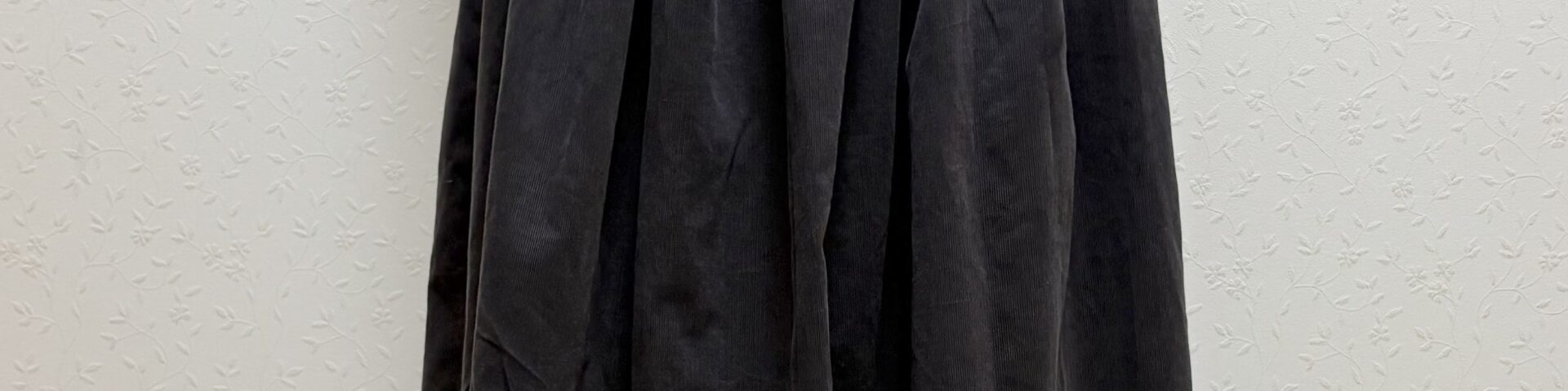 再販のお知らせ 2025年12月28日 clover 作品 コーデュロイのギャザースカート(チャコールスモーキー)の再販を開始いたしました。これからの季節にピッタリな温かいコーデュロイ生地、ブーツやタイツにピッタリなギャザースカート。優しいイメージで合わせやすいチャコールスモーキーです。
