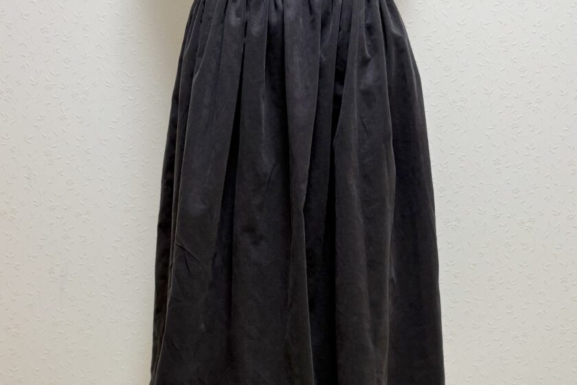 コーデュロイのギャザースカート(チャコールスモーキー)の再販を開始いたしました。これからの季節にピッタリな温かいコーデュロイ生地、ブーツやタイツにピッタリなギャザースカート。優しいイメージで合わせやすいチャコールスモーキーです。