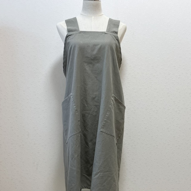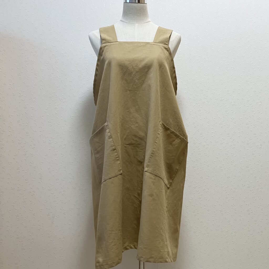 頭からスポッとかぶるだけ、ヒモを結んだりほどいたりがいらない、着脱がラクなエプロンです。